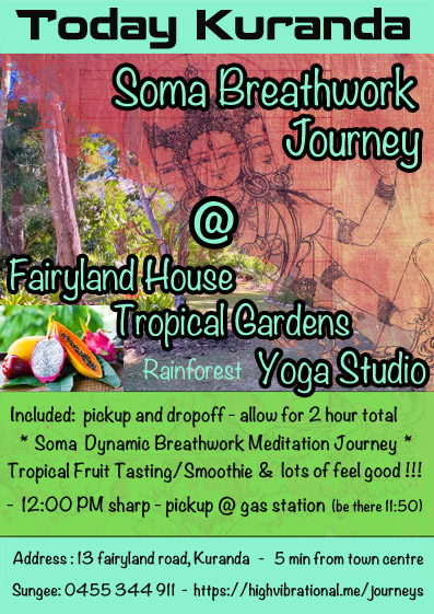 Once in a while we will offer a Breathwork Journey either in Kuranda town or Cairns or Port Douglas..